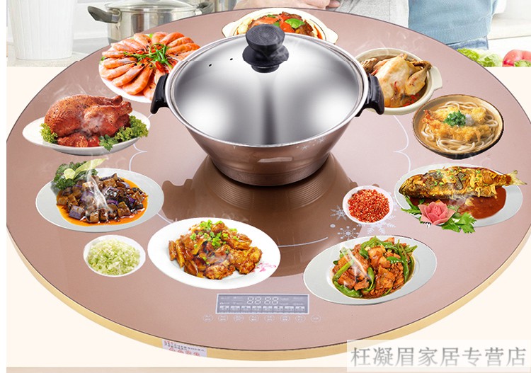 2019新型家具家庭用円卓回転テーブル鋼化ガラス自動加熱恒温温温野菜宝電動回転帯鍋オーダー黒1径800温野菜皿手動回転公式標準装備