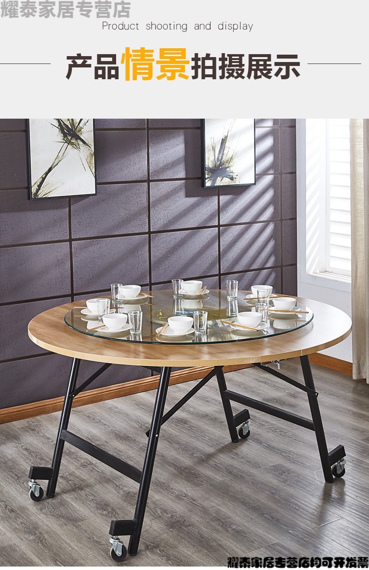 耀泰の家が折り畳みました。円卓のテーブル。家庭用テーブル。小さなテーブルです。簡易円卓ホテルの純木円形デスクトップホテルの大円卓。2.4 mテーブル+1.8 m鋼化ガラスの回転盤。