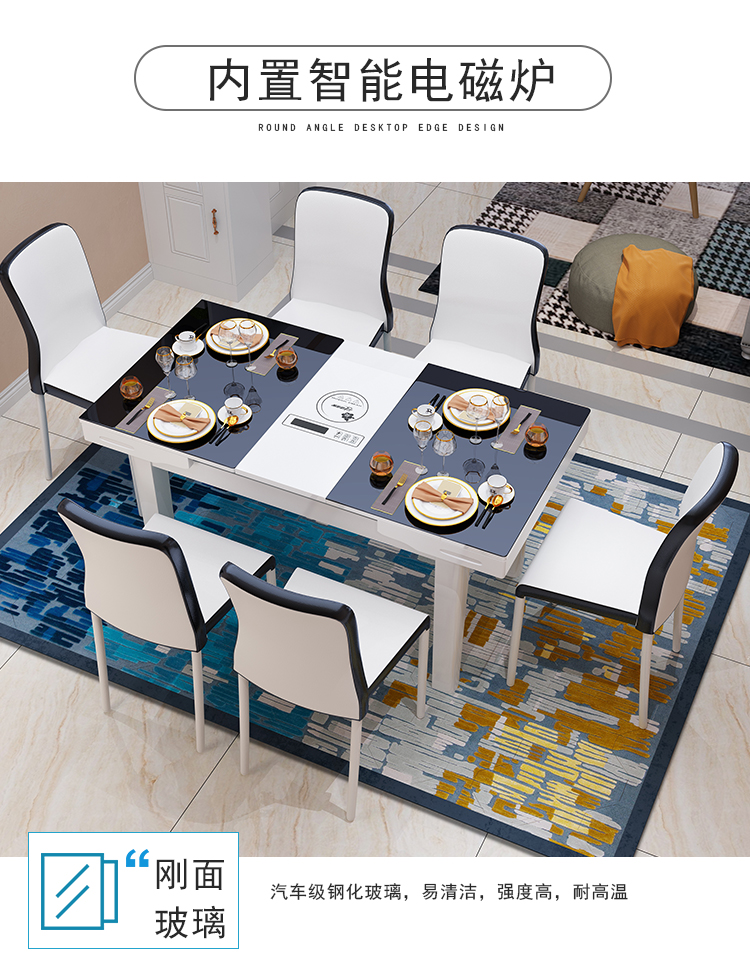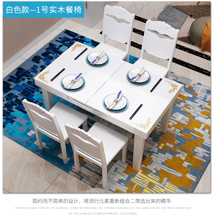 純木テーブル折りたたたみテーブルセットテーブルとテーブルと椅子の組み合わせ家庭用伸縮式の長方形の純木テーブル小タイプ電磁気炉スチールガラス食事テーブル白四角花テーブル+4本の椅子を電磁炉に持ち込みます。