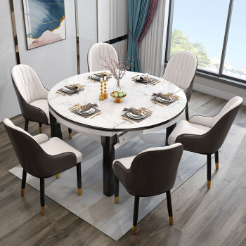 カロソンの食卓北欧大理石のテーブルセット鋼化ガラステーブル純木方円の両用テーブル
