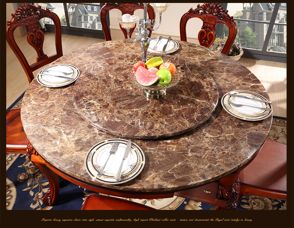 えっと、森洋風伸縮大理石テーブルセット6人の純木円形折りたたみたみテーブルアメリカ式テーブル1.2 m 1.5 mテーブル4椅子(Dタイプ)1.2 m
