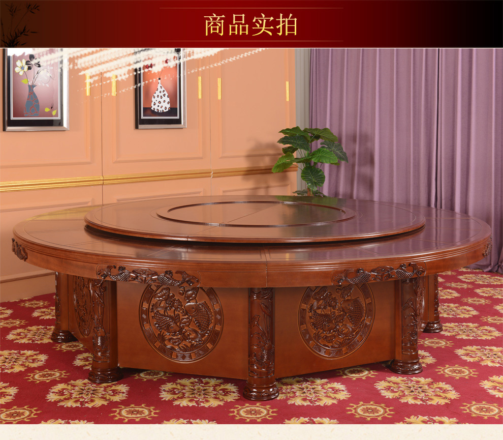 周渝木業ホテル電気テーブル電動大円卓ホテル宴会テーブル豪華20人鍋テーブルカスタム回転テーブル中国式円形家庭用テーブル直径1.8メートル電動テーブル
