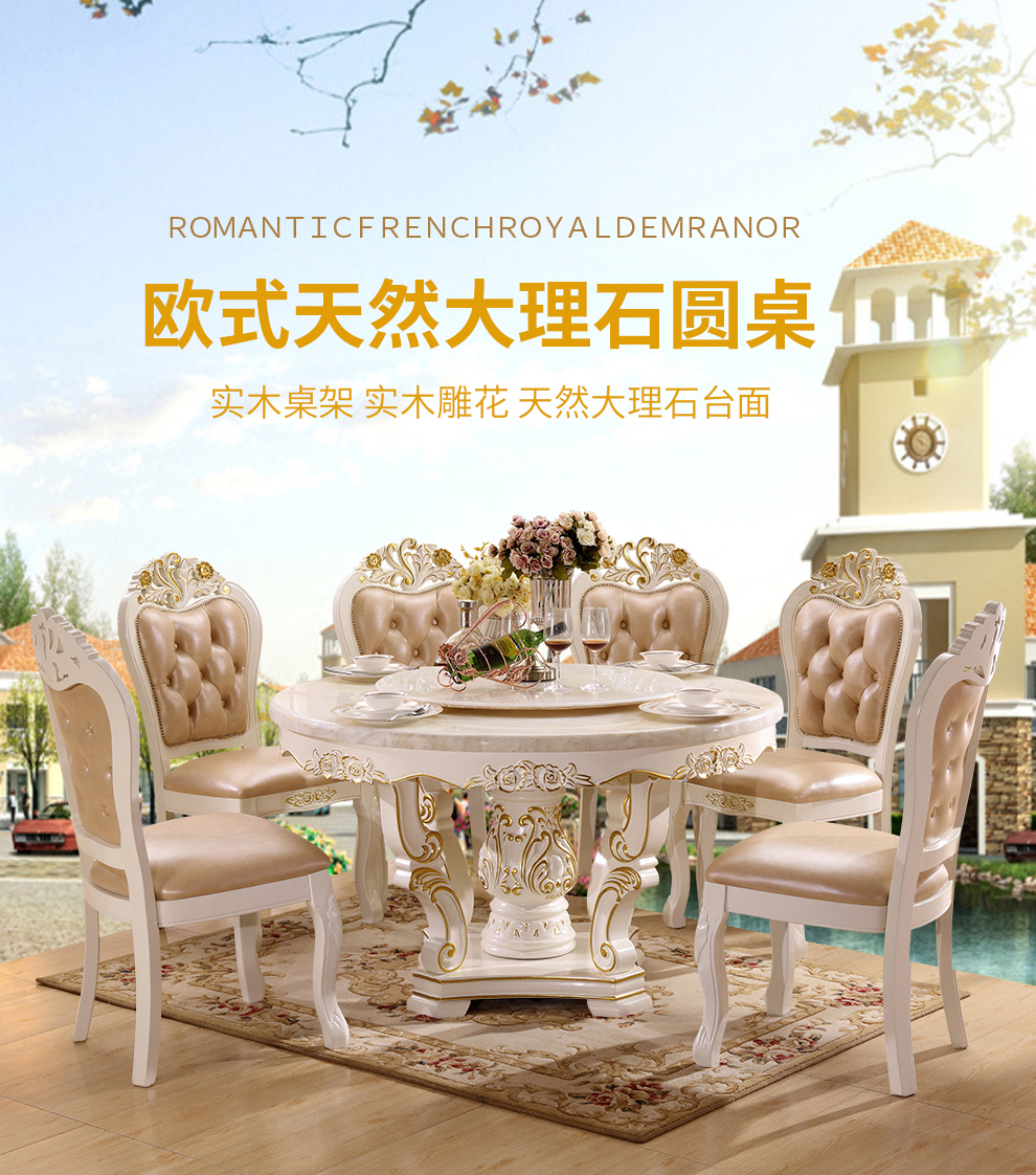 大理石の食卓は6つの食事用の椅子を持っています。洋風の彫刻が精巧で美しいです。広東省の専門工場で生産されたものです。とても満足している一回のネットショッピング。玉に足りないところは輸送途中にたまに小さな傷があります。