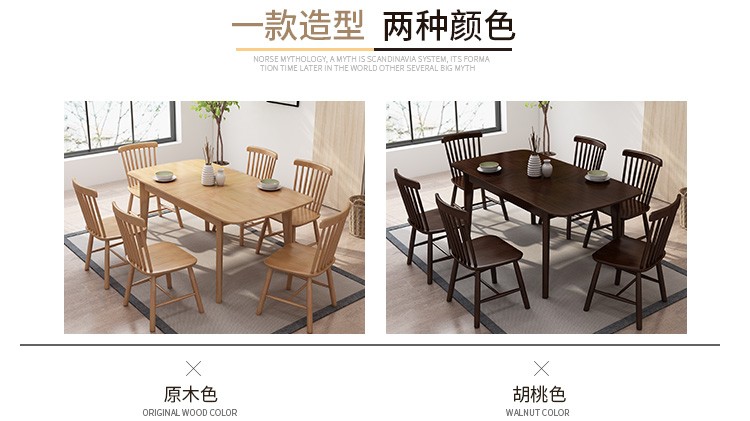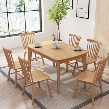 海善家の食卓全純木伸縮折れみの食卓1.2/1.5メートルの大きさで、タプレ木張りの長方形の食事テーブルとテーブルの組み合わせはシンプロダインレストランの家が伸縮できるテーブル(ウィンザーチェア)原木色のテーブル2つの椅子があります。