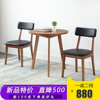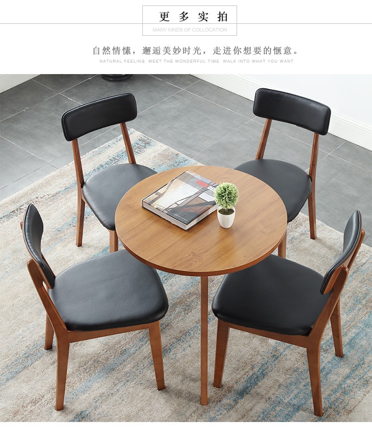 コムヒョン宇レジャー純木商谈テーブルと椅子の組み合わせはシンプロモーションテーブルと椅子の創意休憩エリアのテーブルと椅子の北欧ミルクティーのデザート店の小さなテーブルと椅子のビジネス交渉テーブルと椅子の胡桃色の黒い皮の椅子の二つから販売色の備考書があります。