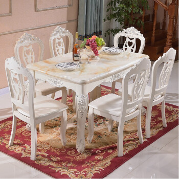 金雅名尚洋風純木食テーブルセット大理石長方形テーブルモダシンプ彫刻西テーブル4椅子-超繊皮椅子(標準画銀タイプ)1.3 m