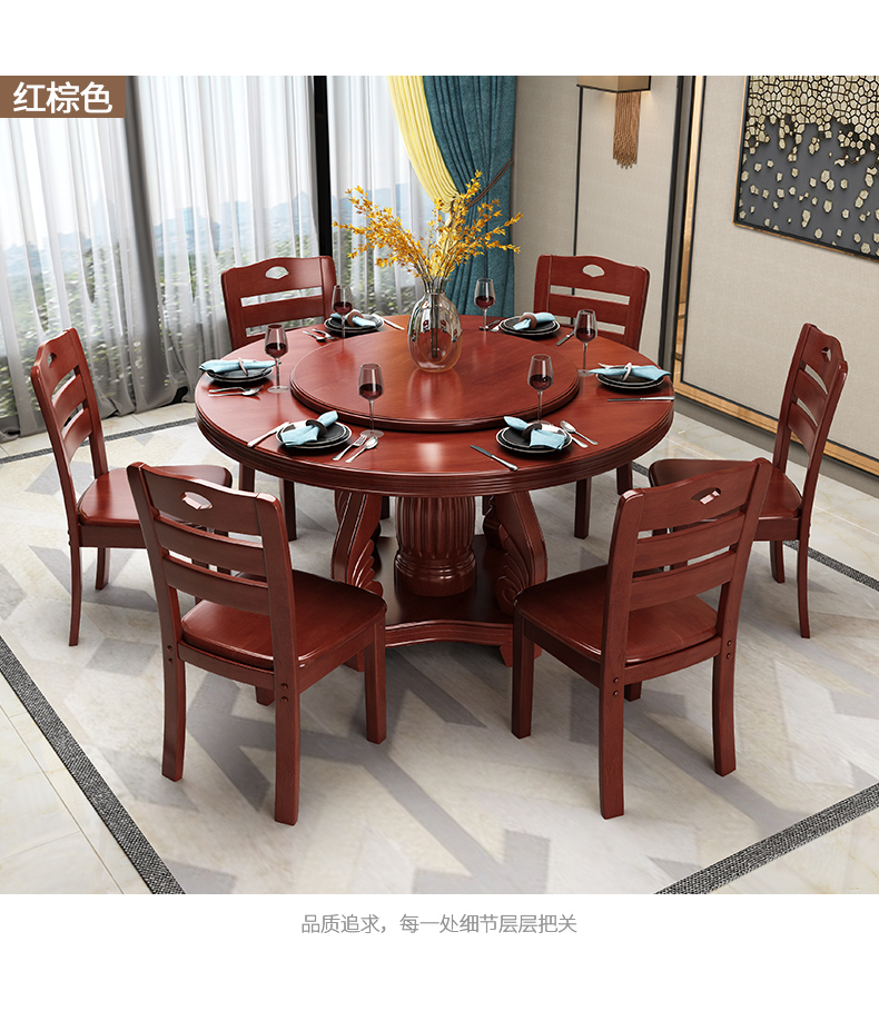 晟揚円卓純木テーブルベルト回転盤円食テーブルとテーブルと椅子の組み合わせモダン中華料理レストラン円形テーブル【胡桃色】テーブル6つの椅子2.