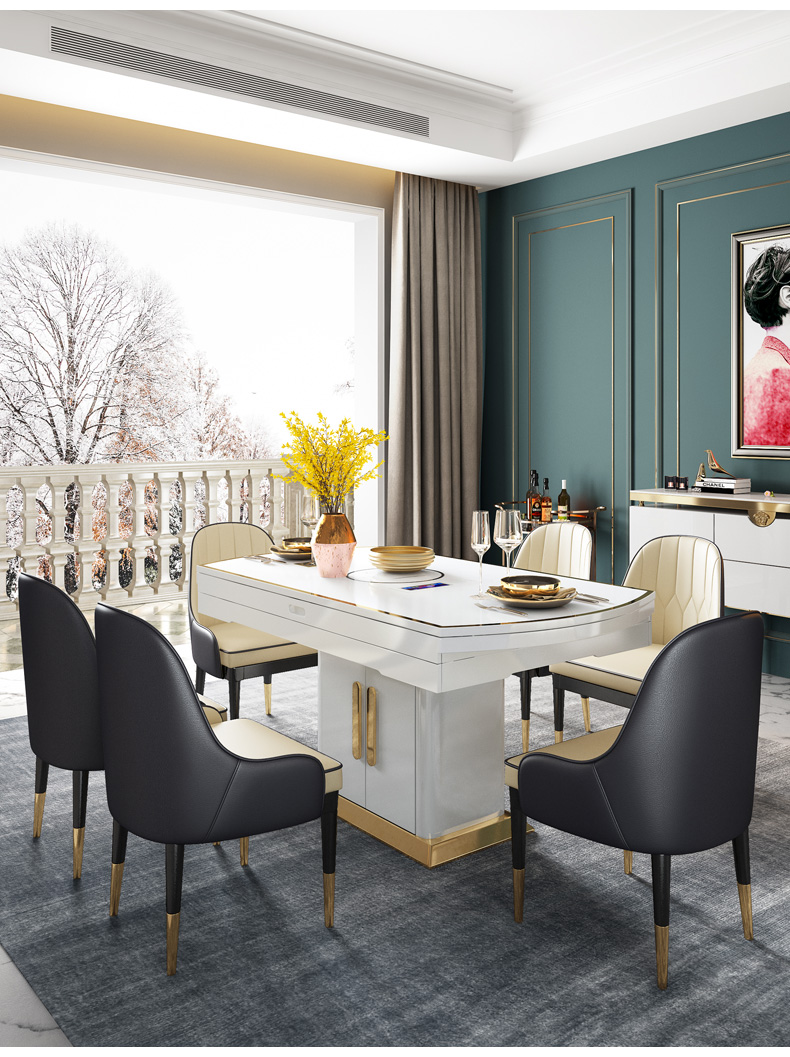 荷庭テーブル折りたたたみ丸テーブル極简軽奢餐テーブルセットシンプロテーブルチタン金ステンレス折りたみテーブル家庭用電磁炉テーブルセットレストラン家具一テーブル4椅子(B椅子)