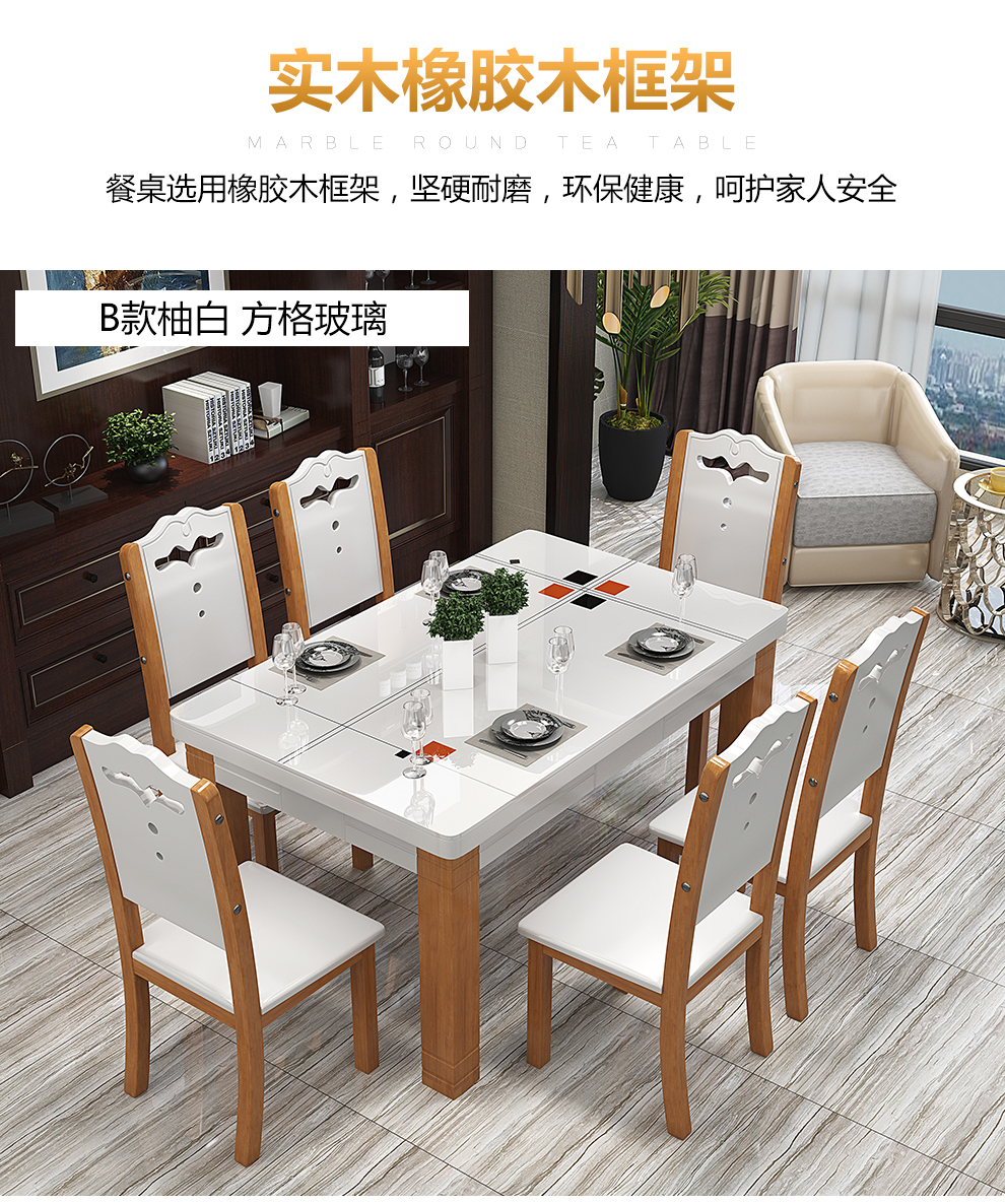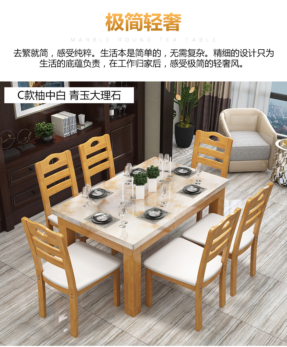 上林春のテーブルテーブル純木テーブルテーブルセットテーブルモダシンテーブルテーブル大理石テーブルBタイプの純白(青玉大理石)テーブル4つの椅子テーブルの長さは1.2メートルです。