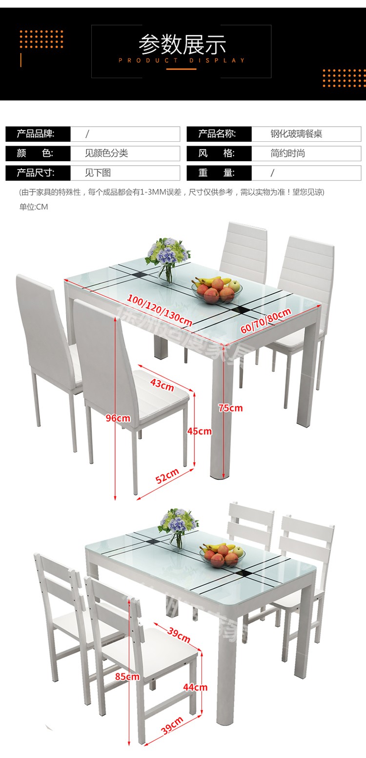 ベベル食卓モダンシン家庭用長方形食事テーブル4/6人小タイプガラス食テーブルセット120*70黒ガラス+4パッケージ全白椅子テーブル