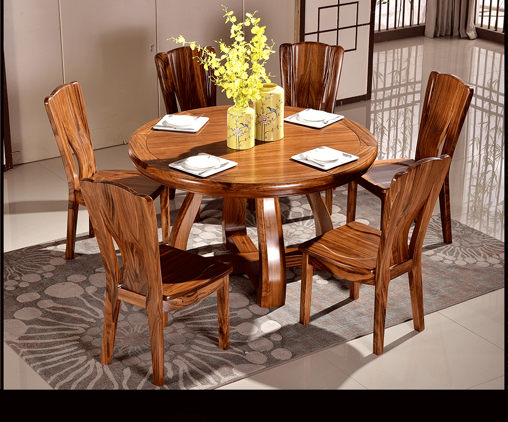 木楽烏金木円テーブル1.35ライステーブルリビングシリーズクミノ木家具モダンン中国式テーブルセット純木ディスク