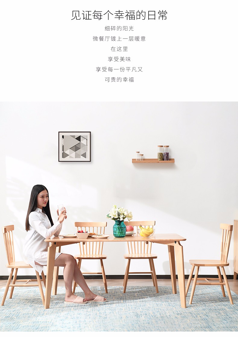 JIAY純木食卓モダシンプレルテーブルセット小タイプ家庭用テーブル長方形レストランテーブル胡桃色(ウィンザーチェア付)1.3 mシングルテーブル