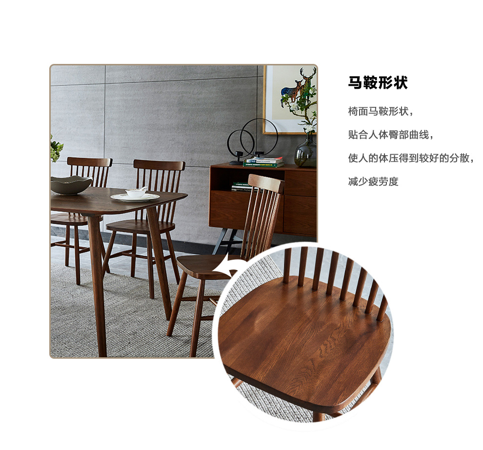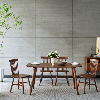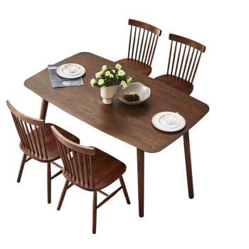 百伽の食卓のテーブルと椅子北欧の純木の食事のテーブルと椅子の組み合わせ馬が輸入のテーブルのモダシンプレル1.5メートルのテーブルに4つの椅子と胡桃色のテーブルを用意しています。