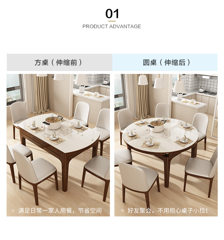 喬倫公館食卓モダシンプレルテーブルセット多機能伸縮帯電磁炉客間漆円卓折りたたたみテーブル1.35 m電磁炉付きテーブル6椅子