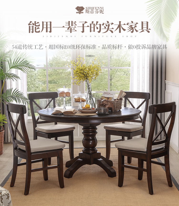 アメリカン純木テーブルテーブルテーブルテーブルテーブルテーブルテーブルテーブルとテーブルを組み合わせた丸いテーブルを作って、古いテーブルを作って食べます。家庭用ワックス木1.3 m円卓胡桃色