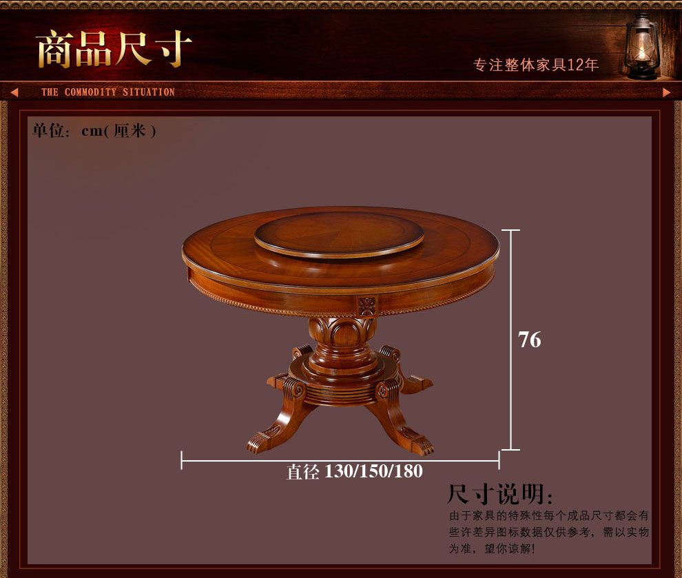 洋風純木のテーブルとテーブルを組み合わせたテーブル付きの純木彫り模様の回転テーブル1.8 mの円いテーブル1.5 m+回転盤+6本のガラス張り椅子