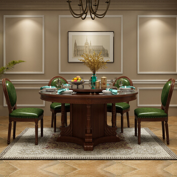 南巢アメリカ円形テーブル回転テーブル家庭4人テーブル純木テーブル1.4 Mテーブル6人テーブル