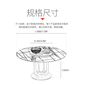 サンダ家具(VANTAR)食卓北欧大理石テーブル家庭用サイズタプレゼ式軽豪华家具セットシンプレルダム円形ベルト回転盘炭素素钢研磨フレーム+チタン金拉丝シャシー(1.35*0.82)回転プレート付き